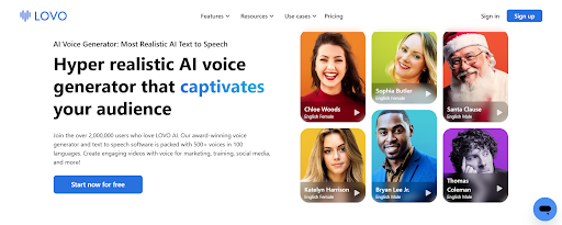 LOVO AI specializes in AI-generated voices, offering tools for text-to-speech conversion, voice cloning, and content creation.