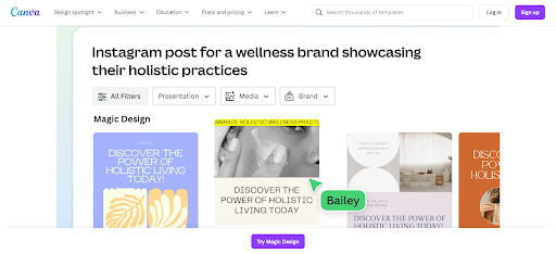 Canva’s Magic Studio suite leverages AI to simplify and enhance the creation of visuals.