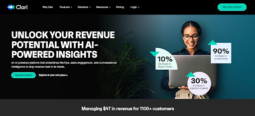 Clari is a revenue operations platform that provides AI-powered insights for optimizing sales performance and improving revenue predictability.