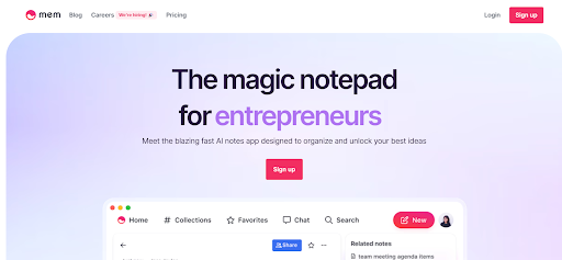 Mem is an AI-powered note-taking app that organizes and connects your notes automatically.