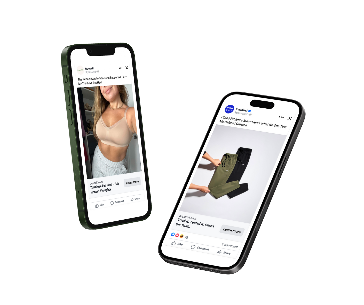 From the outset, the campaign strategy focused on prospecting and driving first-time orders. We developed a mix of editorial angles and first-person skeptic content, tailored to different audiences and demographics, to unlock incremental purchases while highlighting the brand’s premium quality and performance-driven materials. Educational assets played a key role in introducing new customers to the product benefits, which helped drive efficient ROAS even as spend scaled.