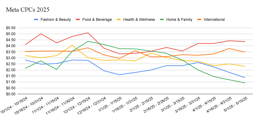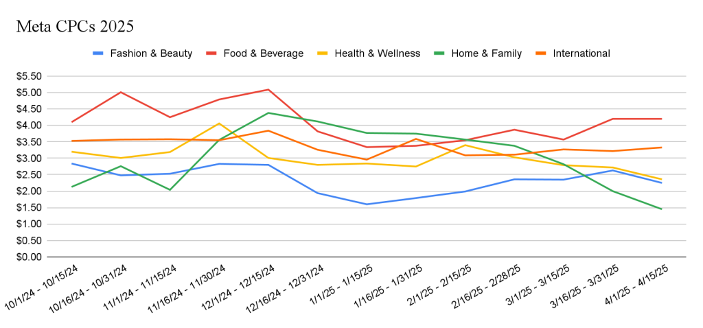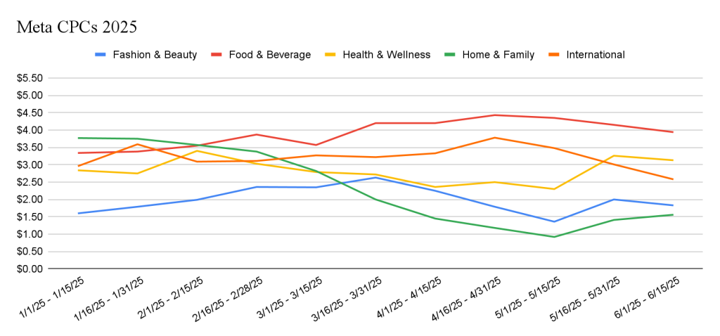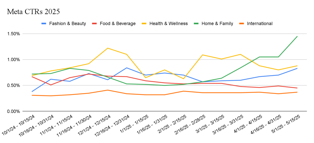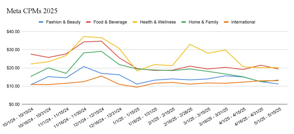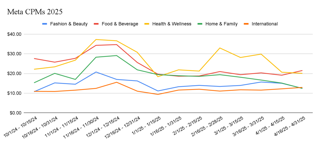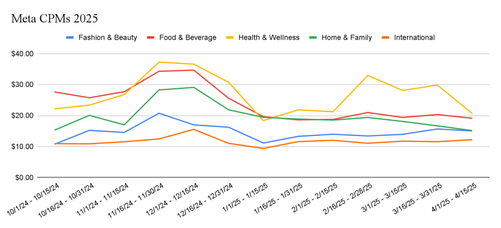 “CPMs held steady this quarter, while CPCs saw a noticeable decrease and CTRs experienced a healthy lift. Additionally, it’s important to monitor any tariff-related impacts or shifts in client pricing, inventory, or supply chain dynamics, as these external factors can influence campaign performance and strategy in subtle but meaningful ways.”