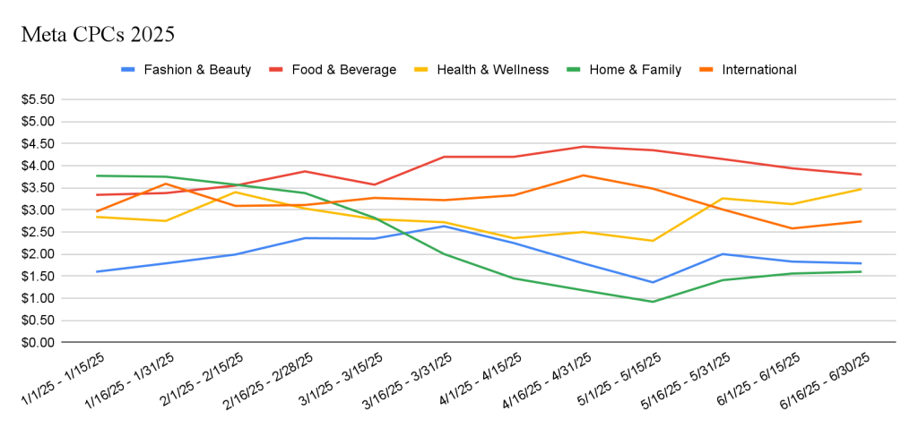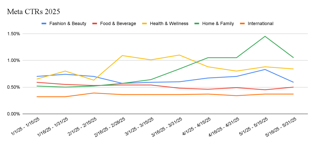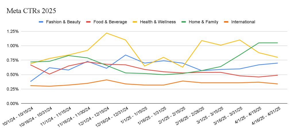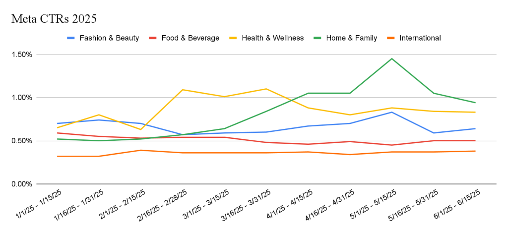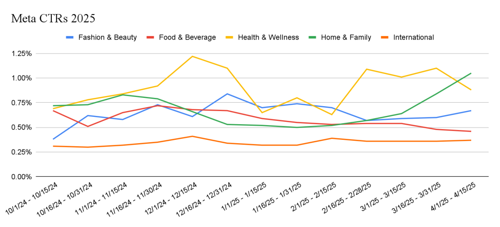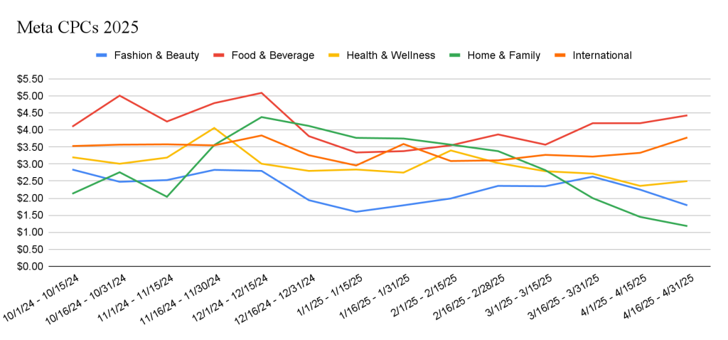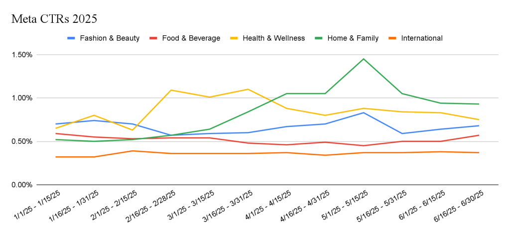 “CPMs held steady this quarter, while CPCs saw a noticeable decrease and CTRs experienced a healthy lift. Additionally, it’s important to monitor any tariff-related impacts or shifts in client pricing, inventory, or supply chain dynamics, as these external factors can influence campaign performance and strategy in subtle but meaningful ways.”